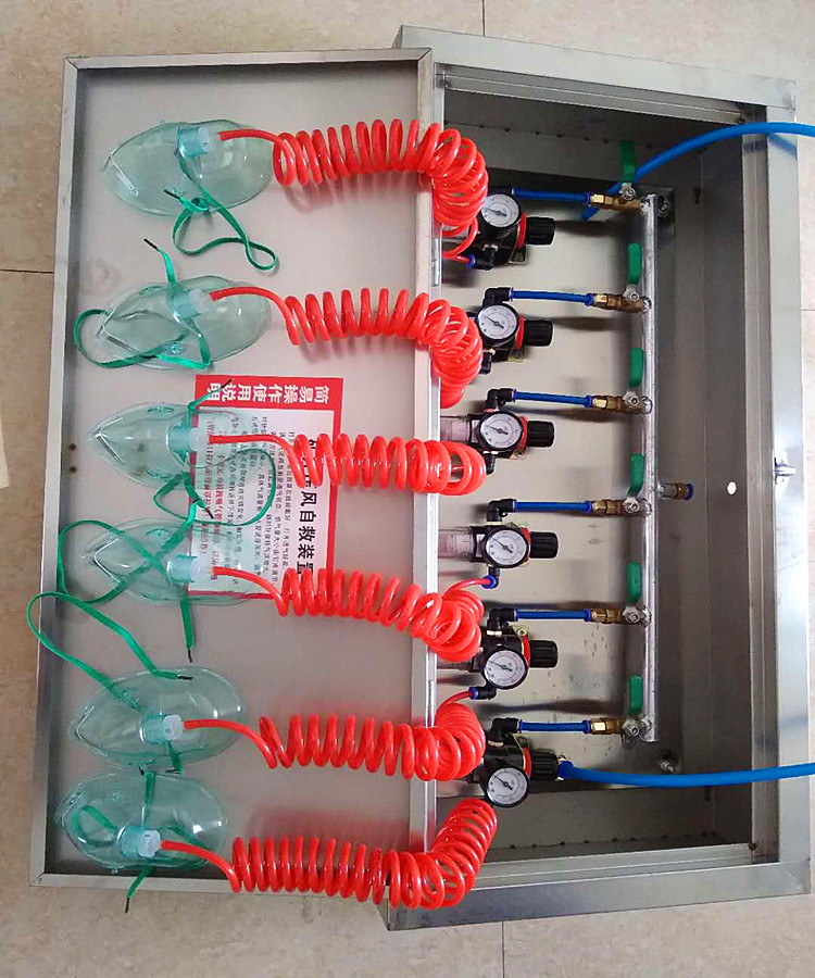 5、使用后關閉調節閥⑥,將各組呼吸器有序放入箱體內,關好箱門。